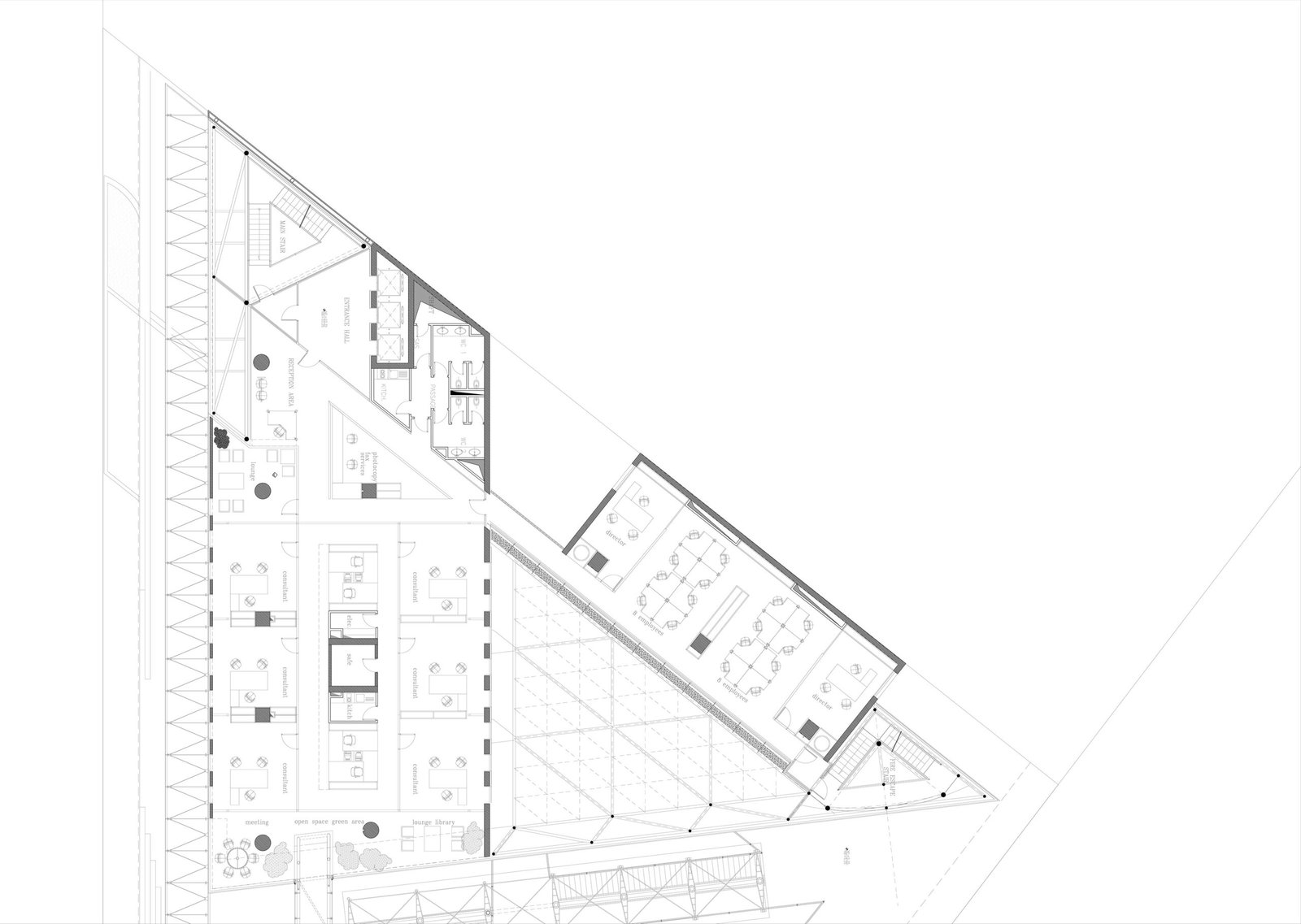 The offices of open-plan workspaces are split up by meeting rooms and private offices with individual workstations placed near the building’s periphery to give access to natural light and views to the city of Beirut to every employee.