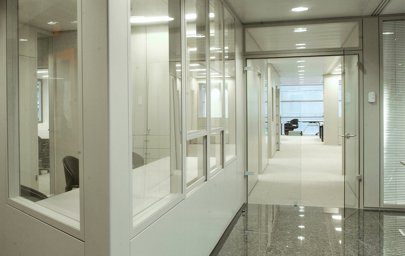 Collective spaces are denoted by lightweight movable partitions thus offering flexible interior spaces with a monochromatic white palette against black and white furniture.