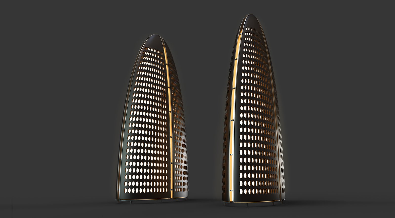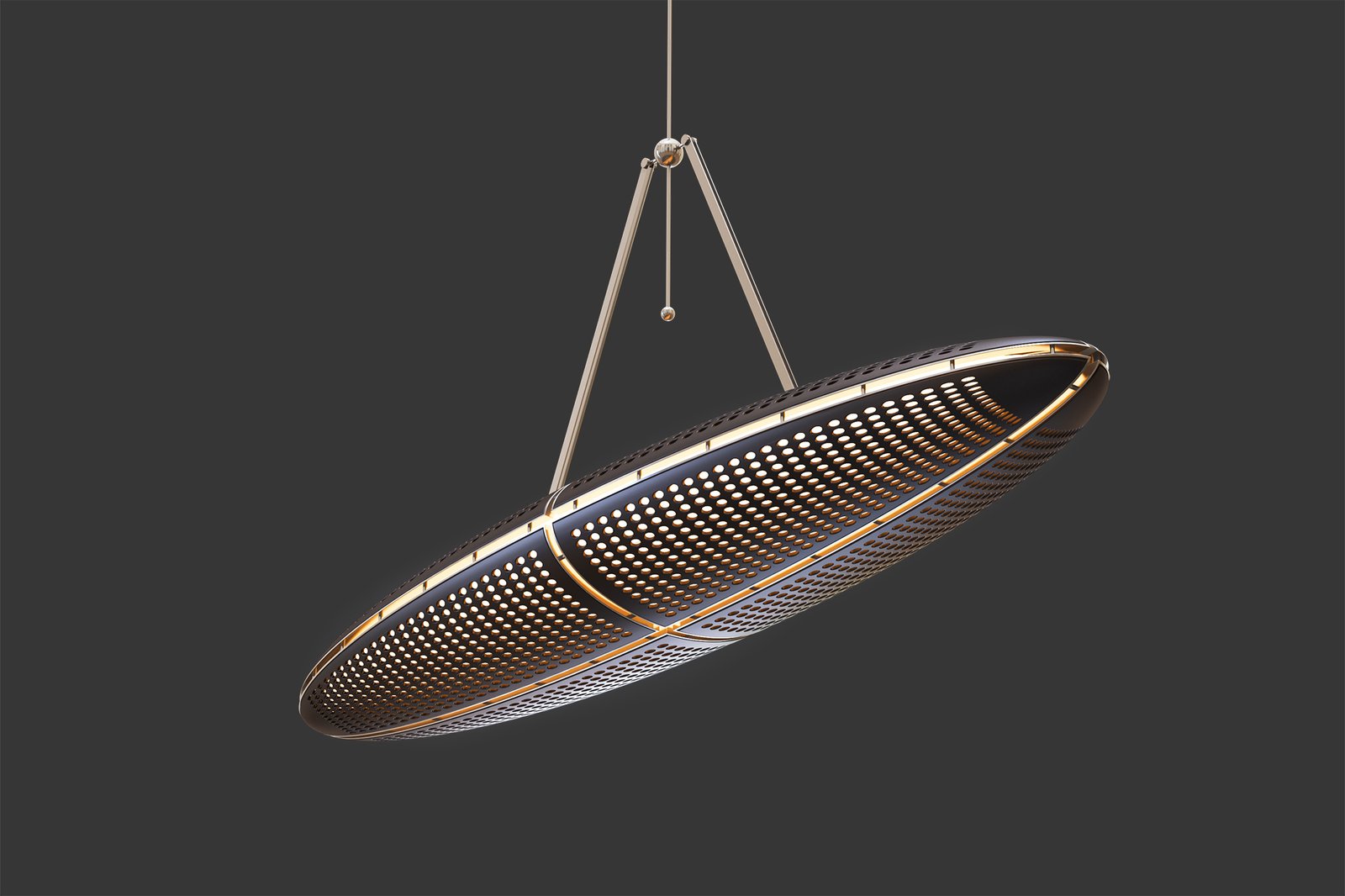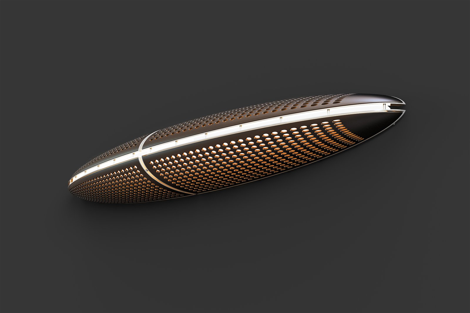 Using concealed and indirect light, the comet lamp provides a magnificent interplay of light and shadow, that takes us to imaginative places, through its perforated wood panels while maintaining high efficacy by distributing light inside the perforated interior of the luminaire.