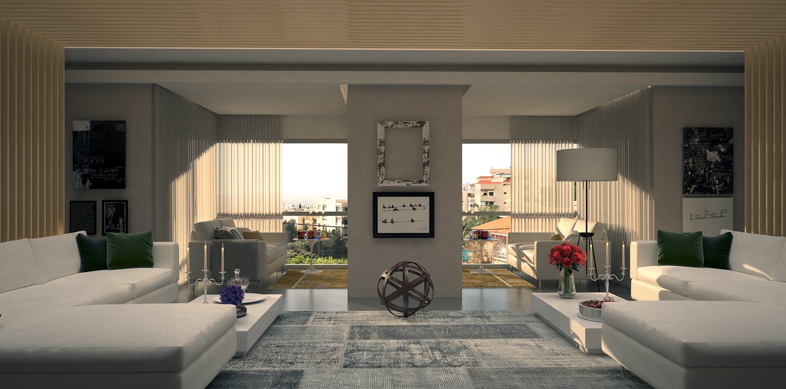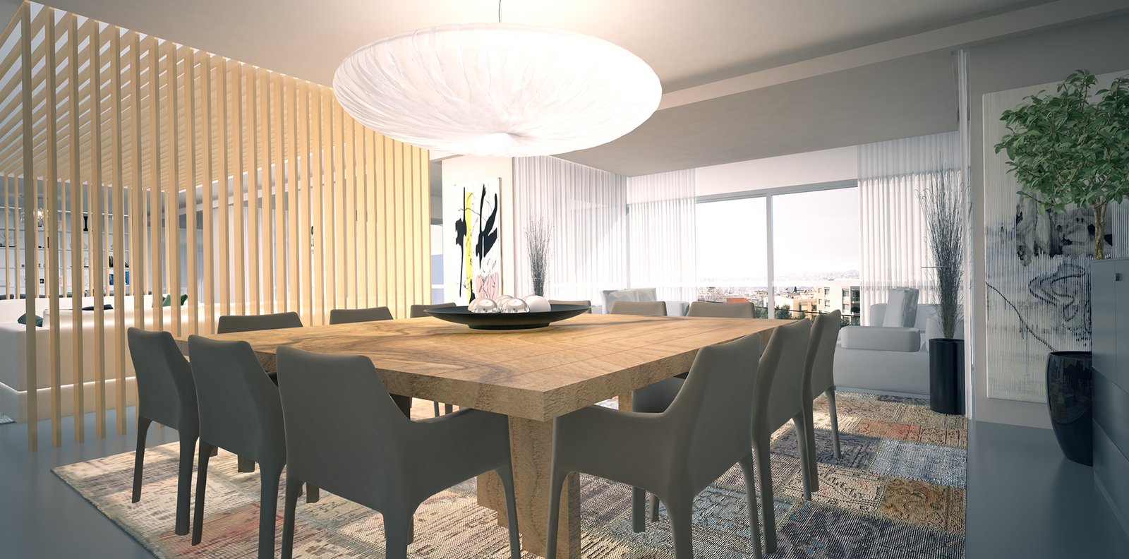 The living area has an open space and combines family room, dining room, smoking room, and living room, while the former balcony is converted to bright interior enclosed spaces that take full advantage of the exterior light and the city view with alternating gardens thus creating privacy for each space.